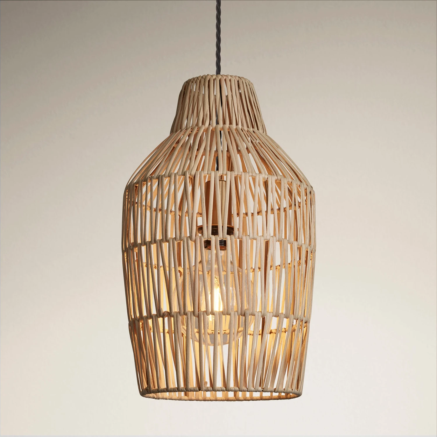 If you are looking for a natural style light in an authentic straw-like tone, our Boho Rattan Ceiling Pendant light in Natural is perfect for that. Handwoven into its unique vase shape, it is a great addition to any space and made to last. Also available in our black finish for those who prefer darker elements within their space and would like a more monochromatic contemporary feel to their interiors.
