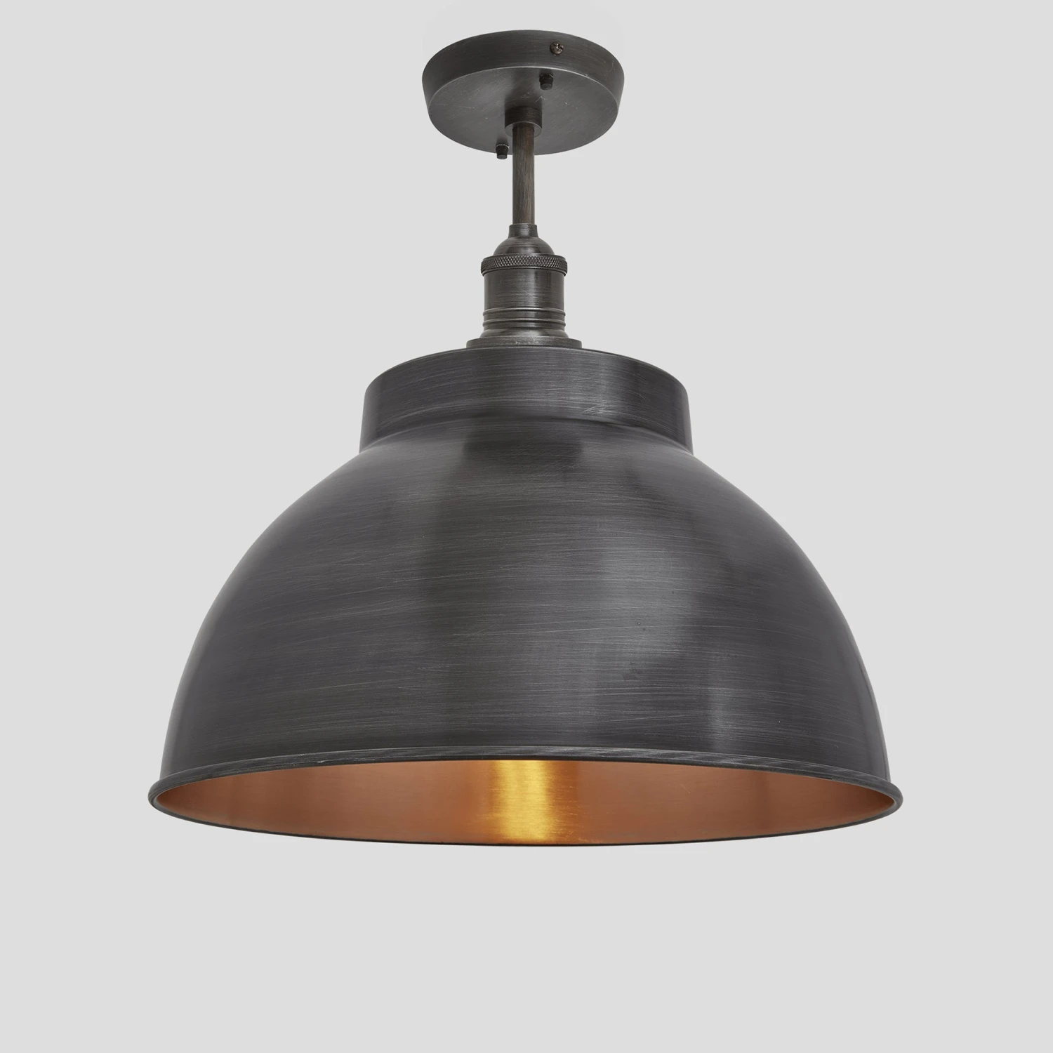This shade is also available in our Brass, Pewter and Pewter & Brass finishes. To keep your design consistent throughout your spaces, we have 8 Inch and 13 Inch variants. As well as being available as a sleek pendant in 8 Inch and 13 Inch.Â