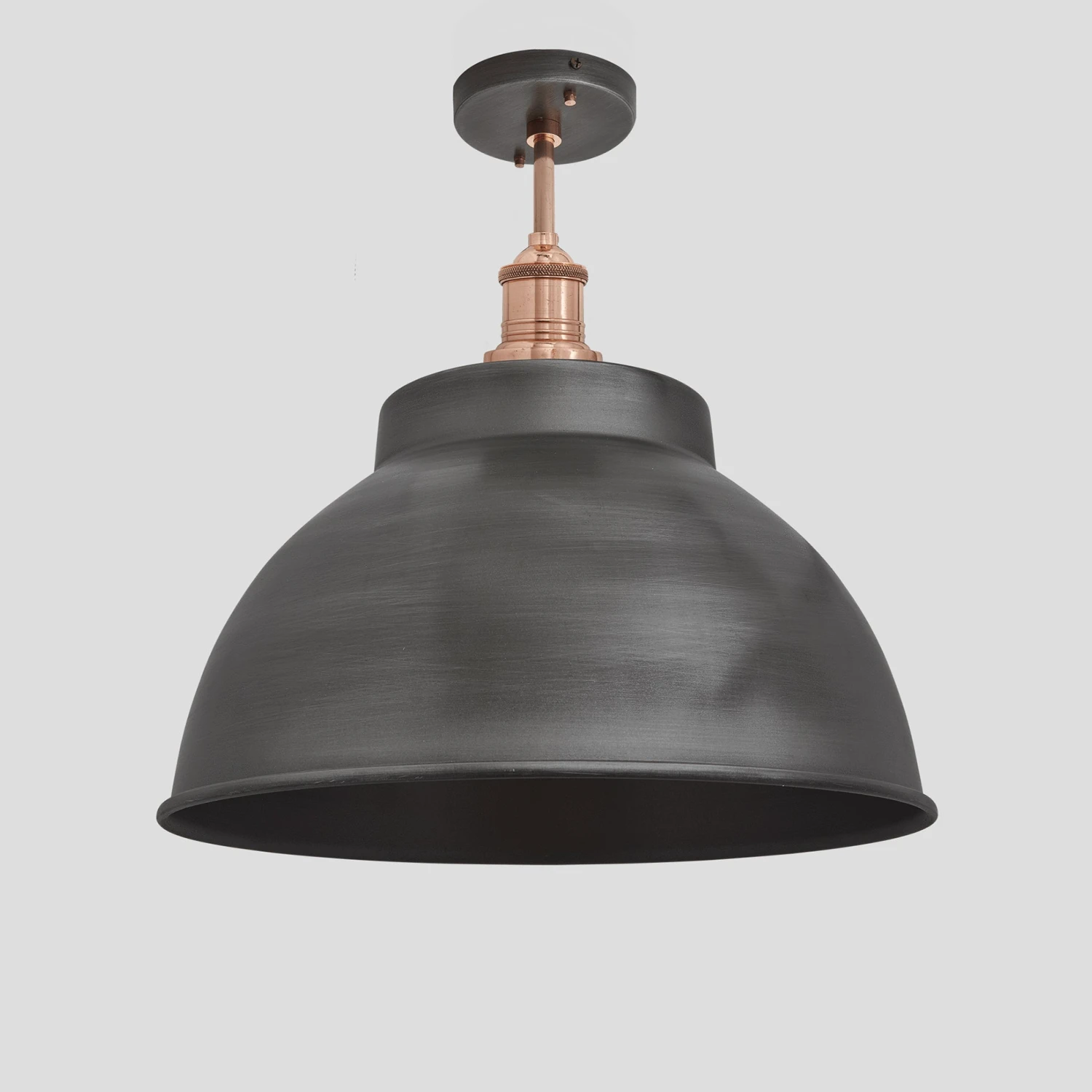 This handcrafted Brooklyn Dome Flush Mount is available in a variety of finishes Brass, Brass & Pewter, Light Pewter, Copper and Copper & Pewter. It works particularly well when mounted in pairs or groups of three, and you can make the lighting yours by choosing from an array of wall holders. To keep your design consistent throughout your spaces we have the available matching Brooklyn Wall Lights in 8 Inch and Pendant Lights which are available in various sizes, including 8 Inch, 13 Inch, 18 Inch and 23.5 Inch fixtures. Our Dome Lights are versatile products that can be used almost anywhere and will complement both classic and contemporary décor.