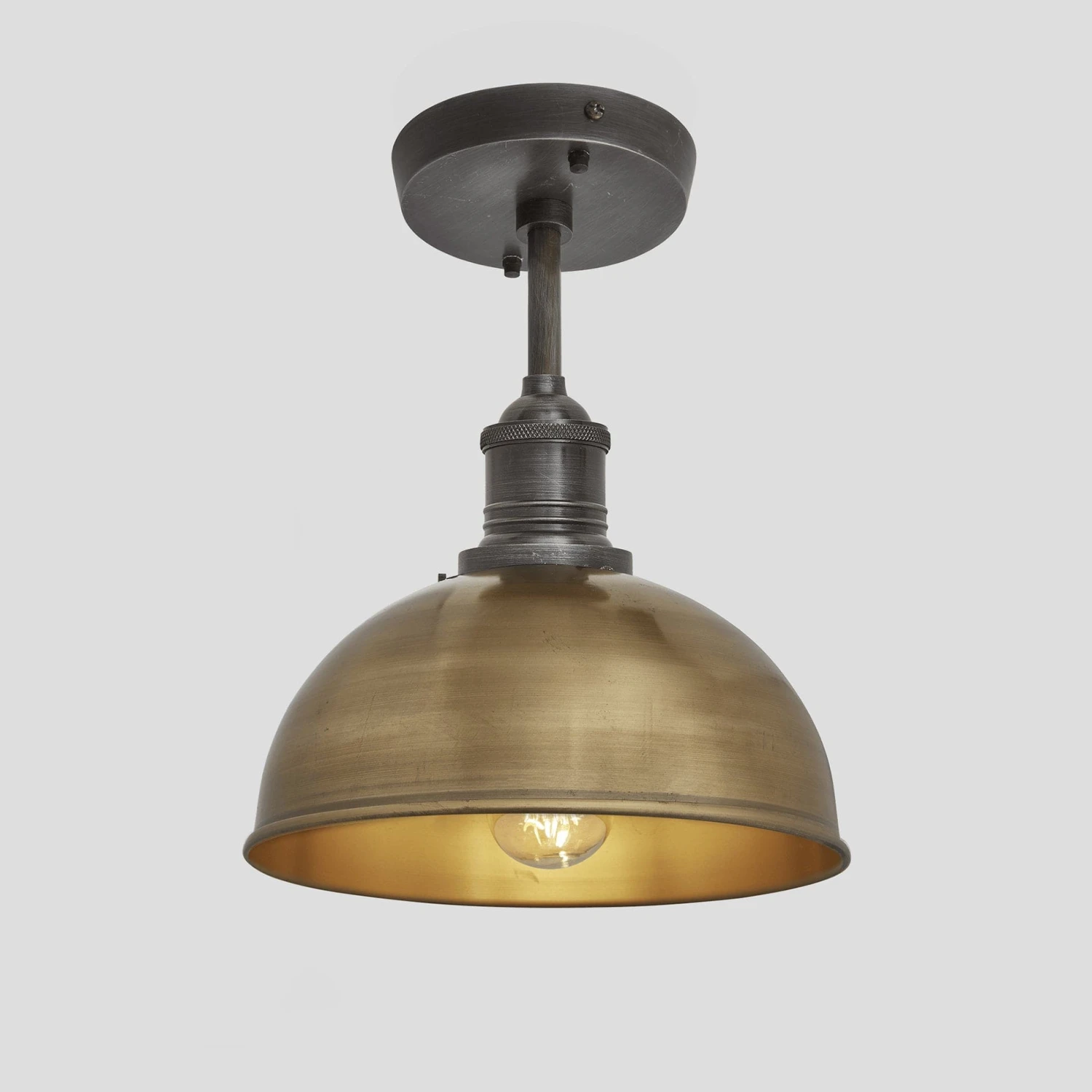 This handcrafted Brooklyn Dome Flush Mount is available in a variety of finishes Brass & Pewter, Pewter, Copper and Copper & Pewter. It works particularly well when mounted in pairs or groups of three, and you can make the Lighting yours by choosing from an array of Wall Holders. To keep your design consistent throughout your spaces we have available matching Brooklyn Wall Light in 8 Inch and Pendant Light which is available in various sizes including 8 Inch and 13 Inch. Our Brooklyn Dome range Lights blend in with almost any kind of décor from Modern Urban to Farmhouse, complementing both the classic and contemporary.
