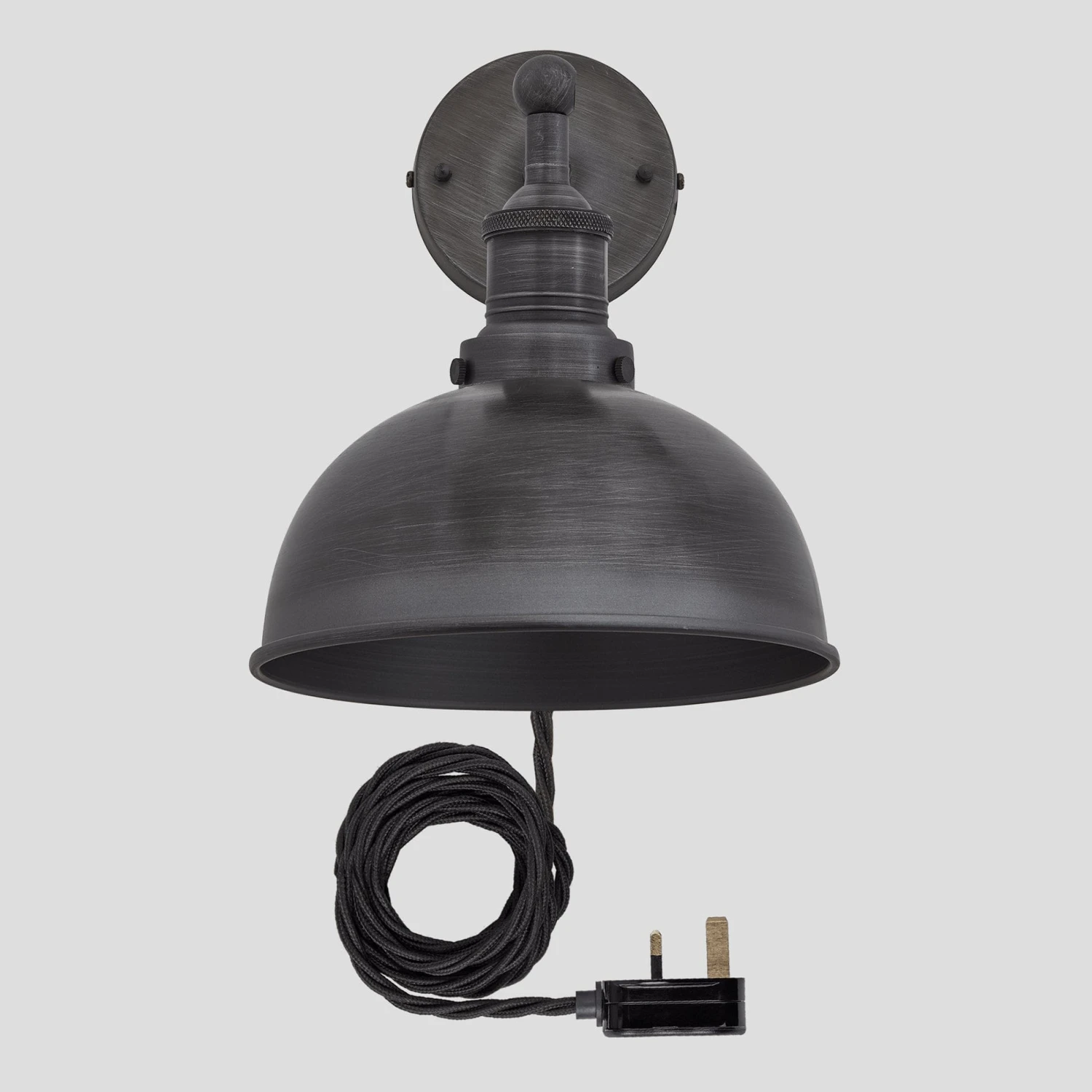 Brooklyn Dome Wall Light – 8 Inch – Pewter – With Plug