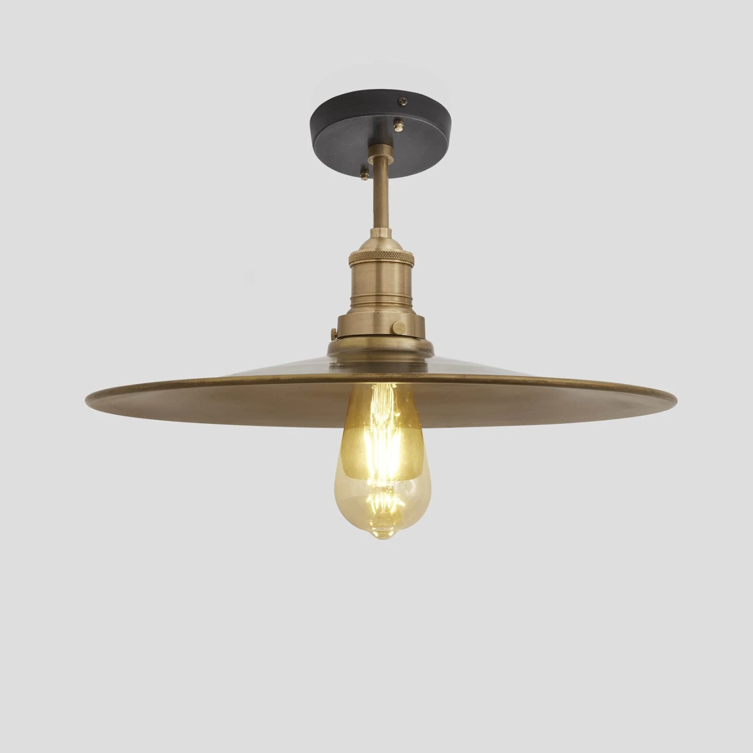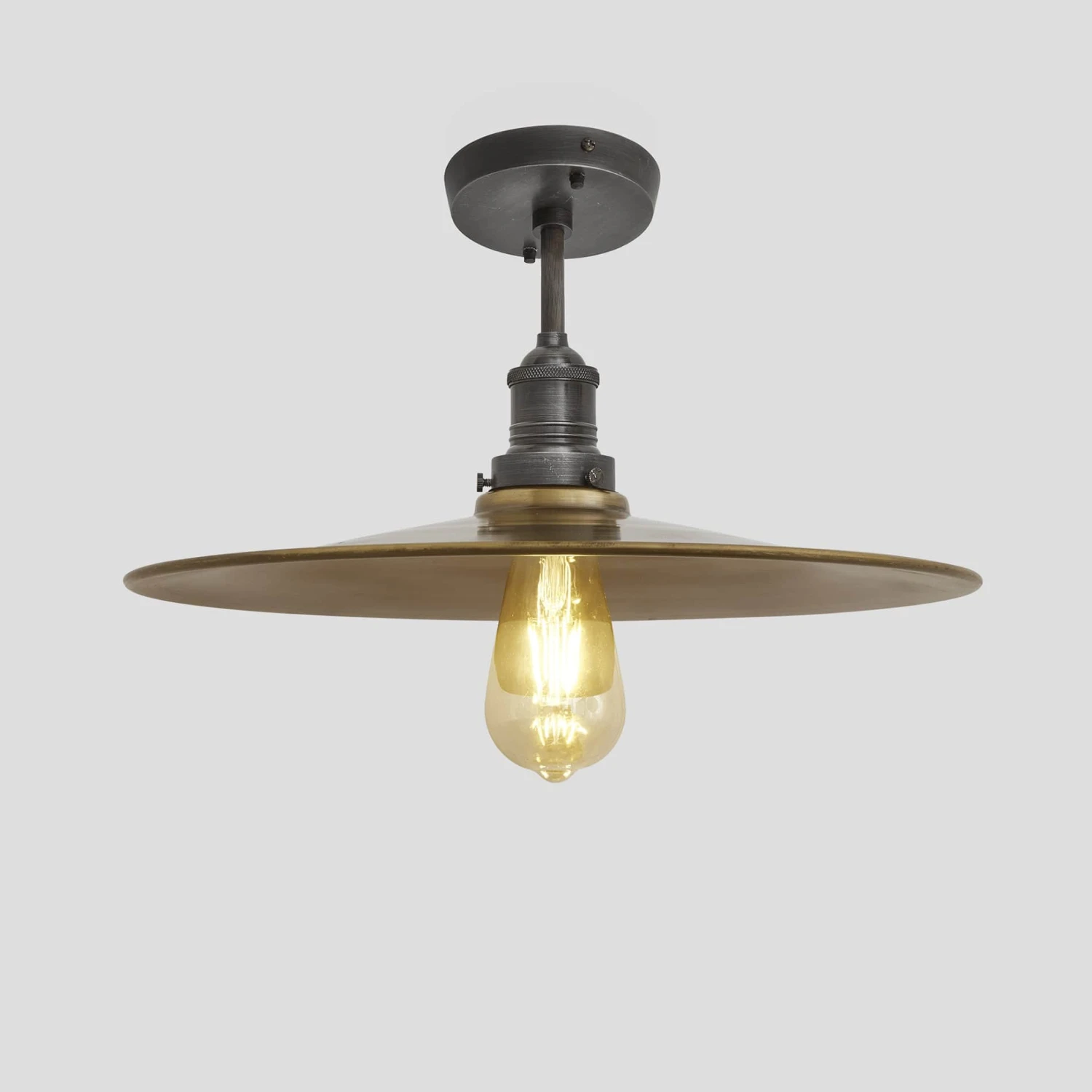 The industrial trend is transforming the interiors of homes and businesses around the UK and beyond. Our Brooklyn Flat 15 Inch Flush Mount is also available with a matching Pendant. This product is also available in Pewter and Copper. This shade also comes in a smaller 8 Inch Flush Mount in Brass, Pewter and Copper.