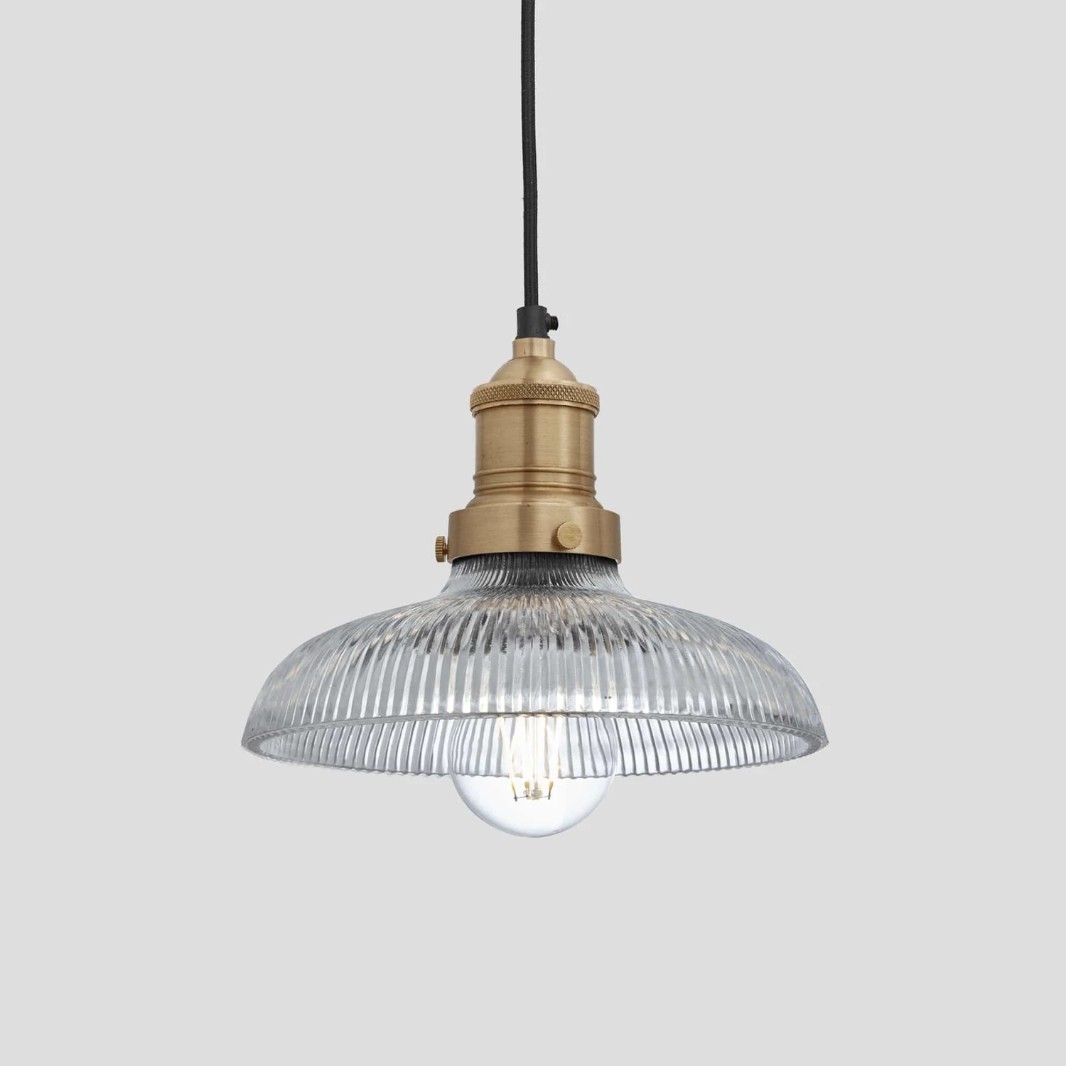 The classic glass design disperses the light in an atmospheric way, casting shadows and creating an ambient environment, perfect for lighting any space. The glass shades are ribbed for a retro design that’s bound to capture the attention of all who see it. The vintage holder makes it the perfect way to tap into the increasingly popular industrial trend whilst maintaining a sense of grandeur.