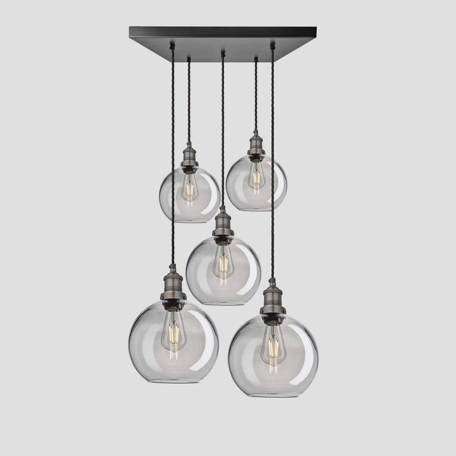 Brooklyn Tinted Glass Globe 5 Wire Square Cluster Lights – 9 Inch – Smoke Grey