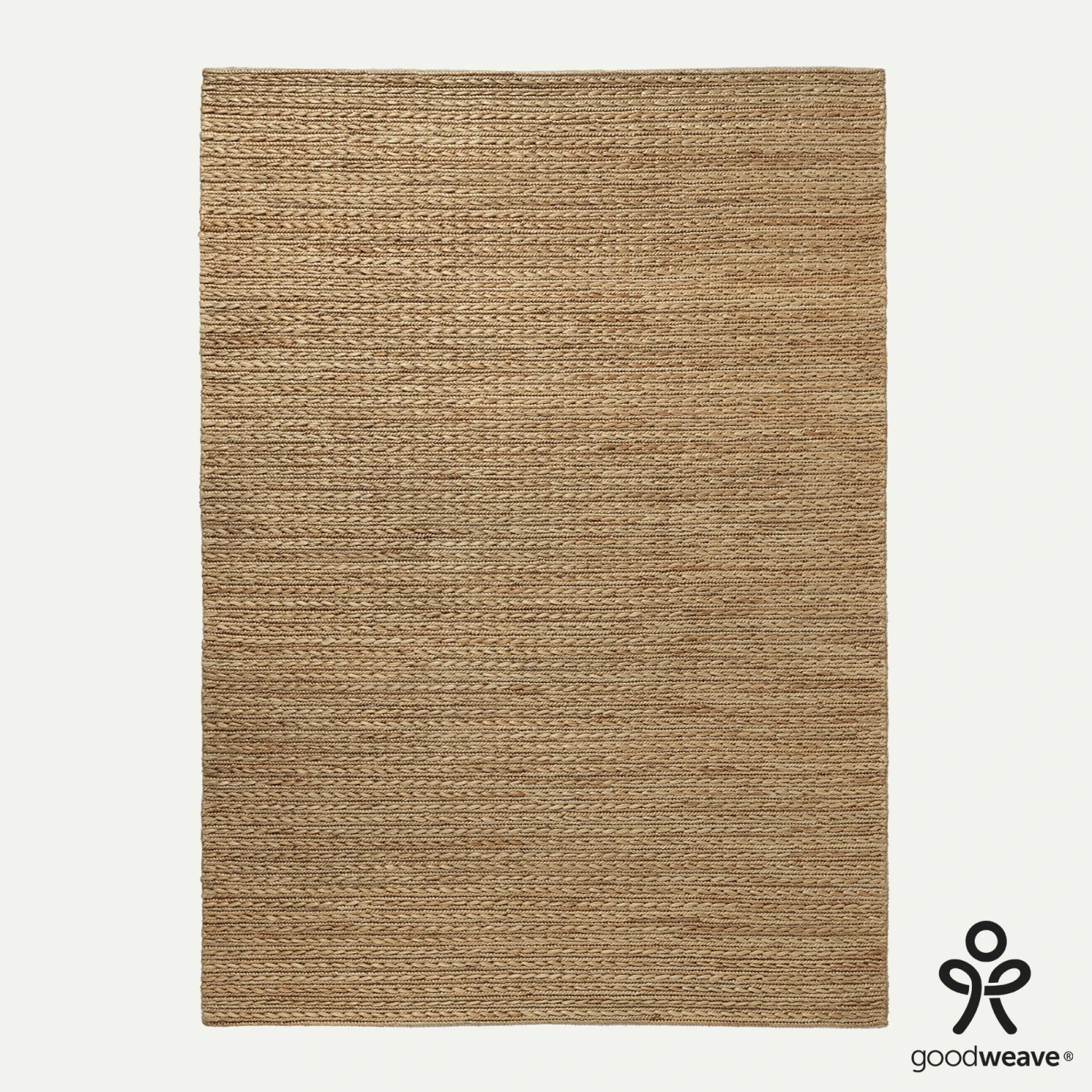 This rug is certified by GoodWeave. The GoodWeave label is the best assurance our hand woven jute rug is made without child, forced or bonded labour, and it also means your purchase supports programs that educate children and improve working conditions for adults in producer communities. Learn more at GoodWeave.org.