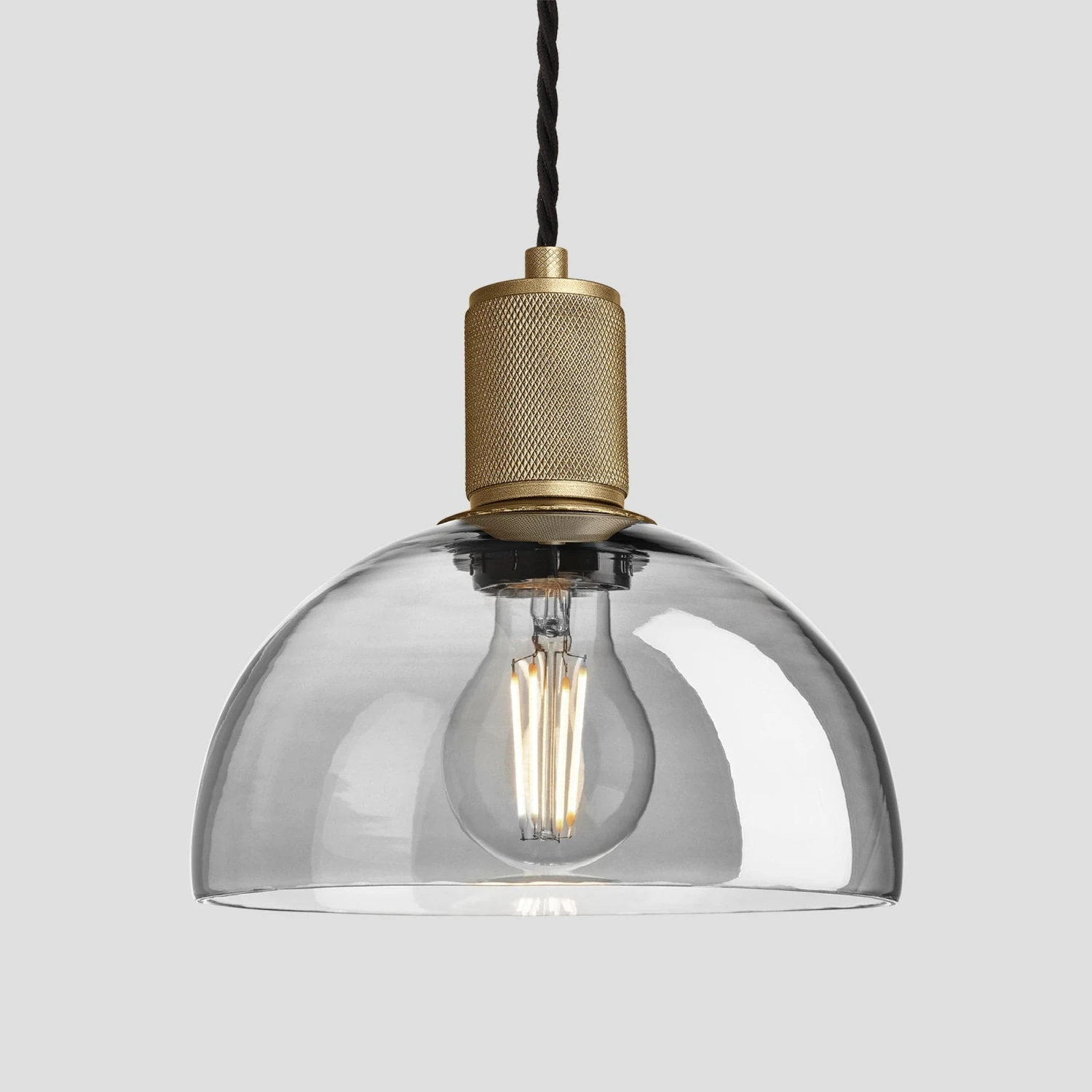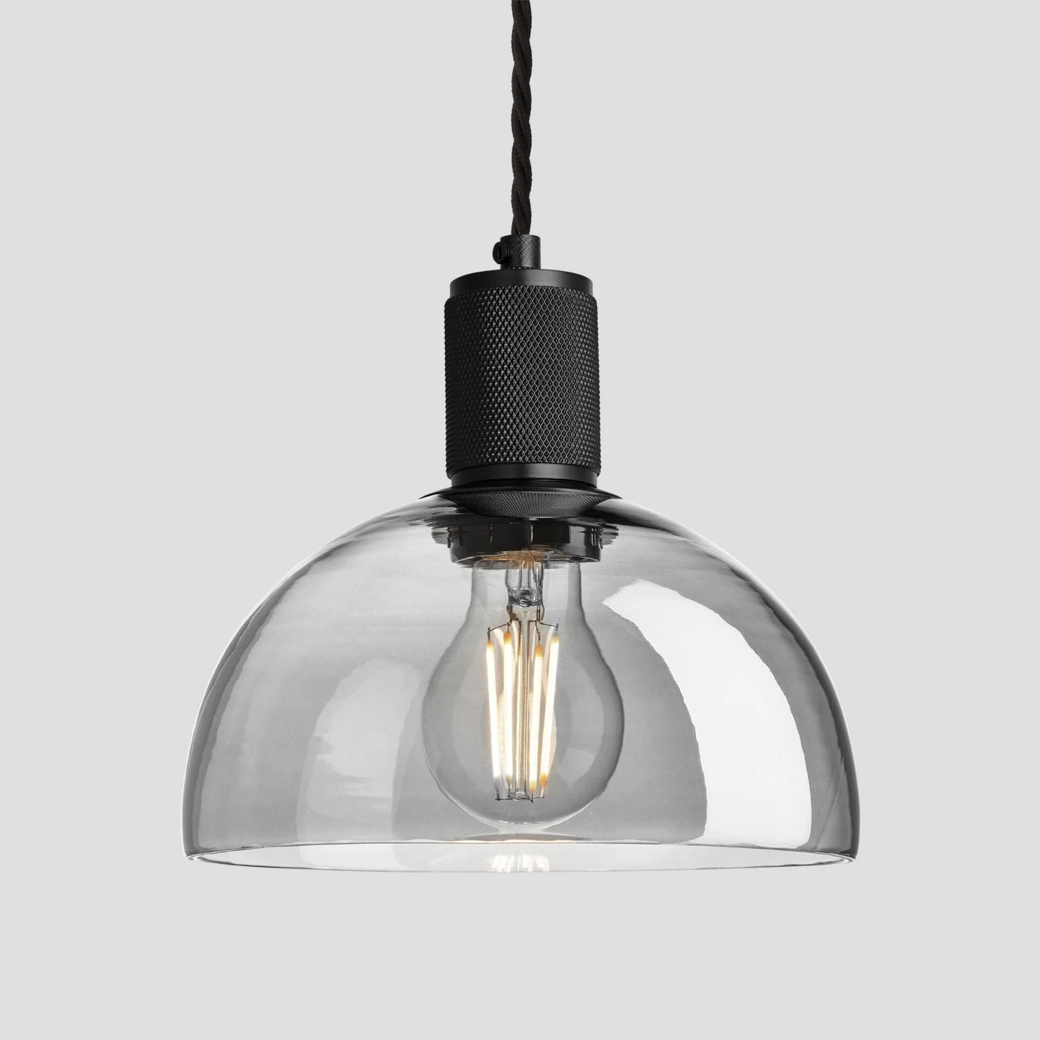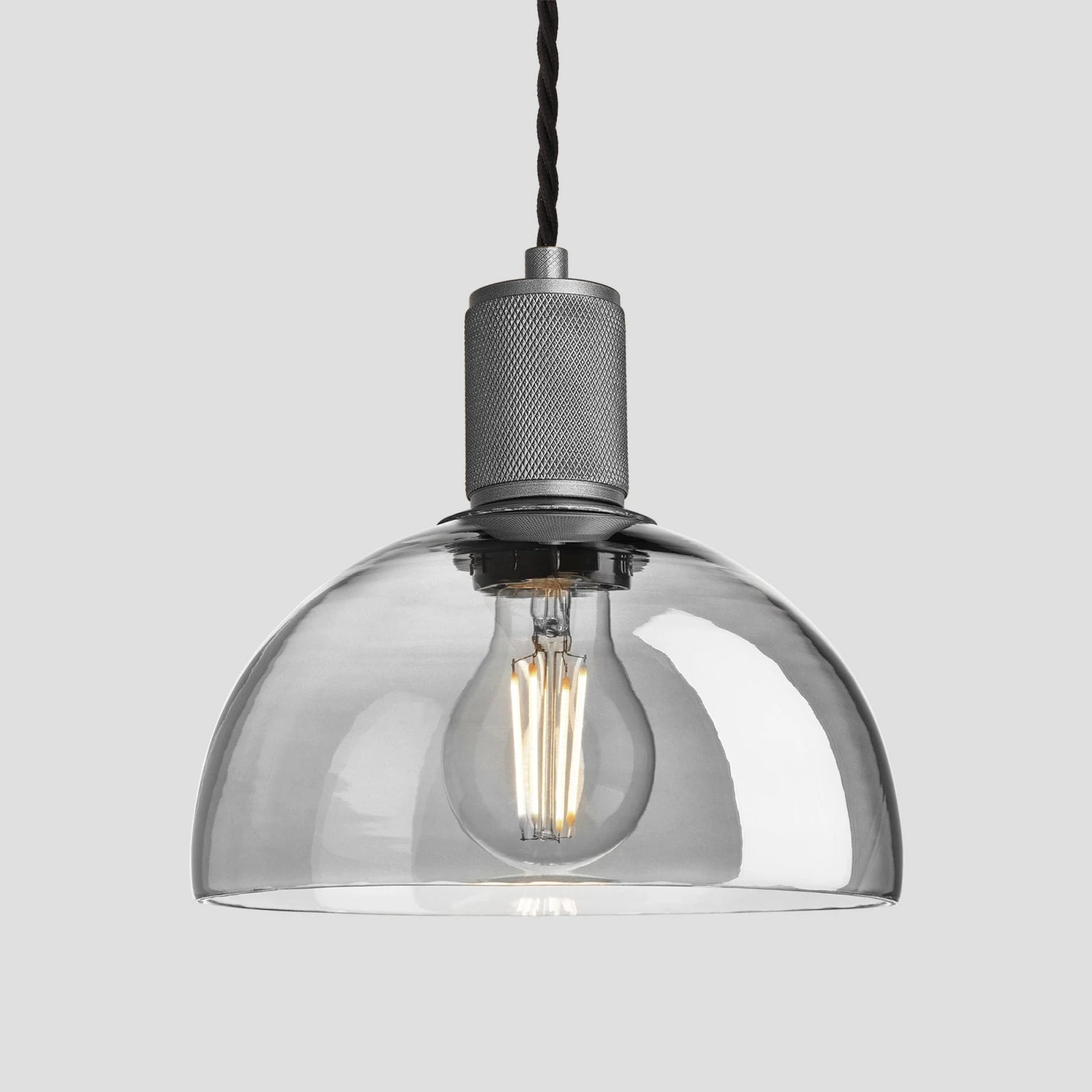 Knurled Tinted Glass Dome Pendant Light – 8 Inch – Smoke Grey