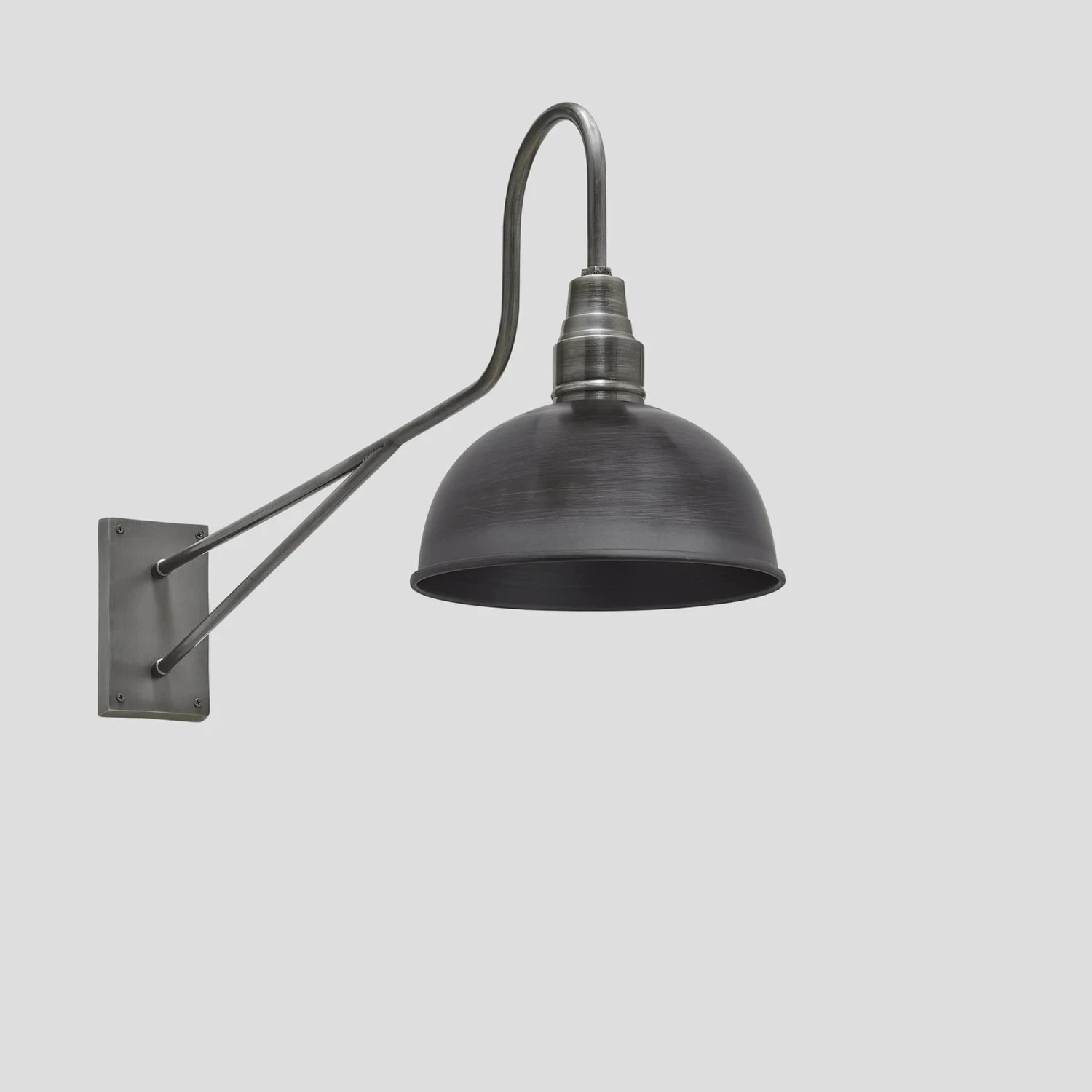 Our Long Arm Dome 8 Inch Wall Light in Pewter is the perfect addition to any space, this fixture is also available in our Copper, Brass, Pewter & Brass and Pewter & Copper metallic finishes.