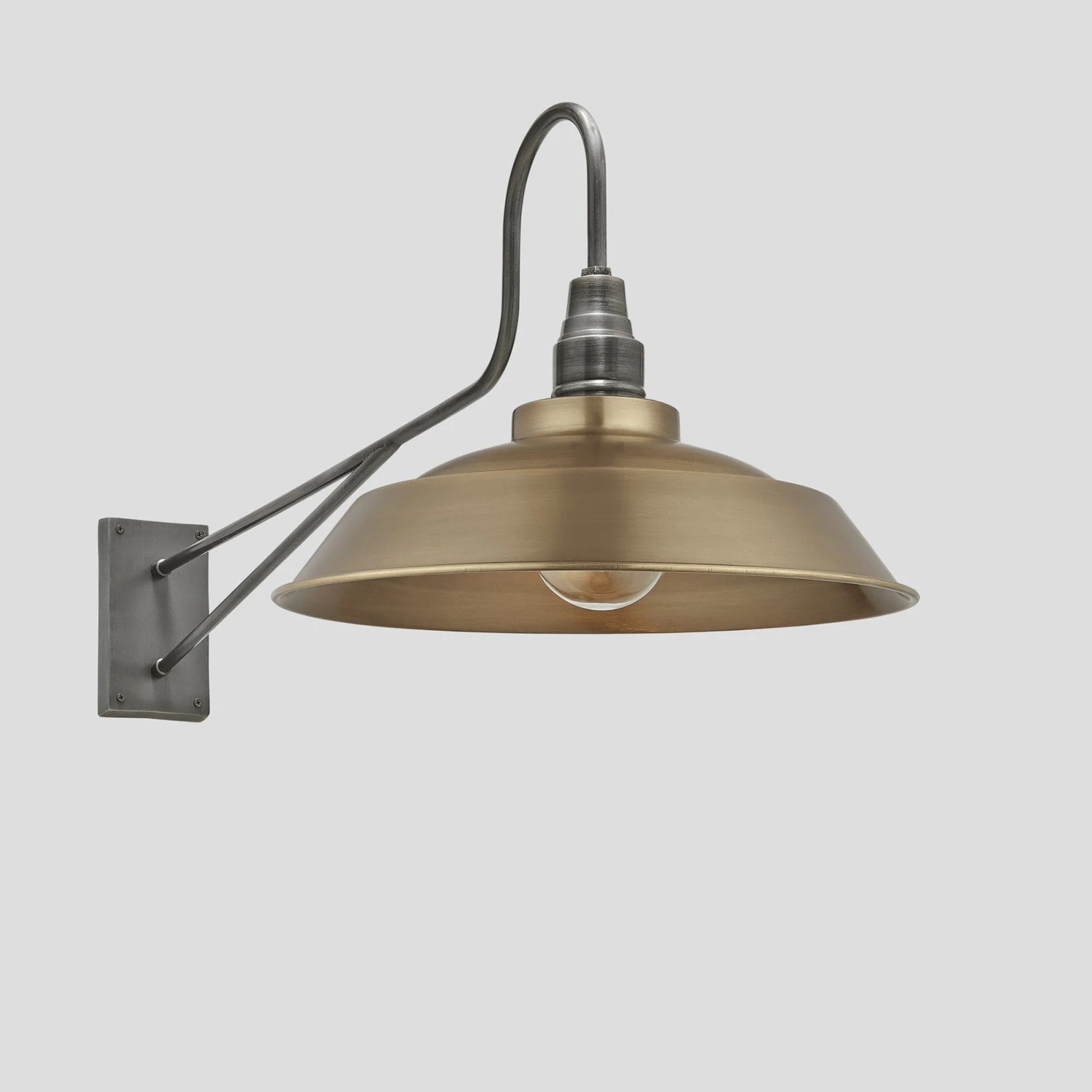 Our Long Arm Step 16 Inch Wall Light in Brass is the perfect addition to any space, this fixture is also available in our Pewter and Light Pewter metallic finishes.