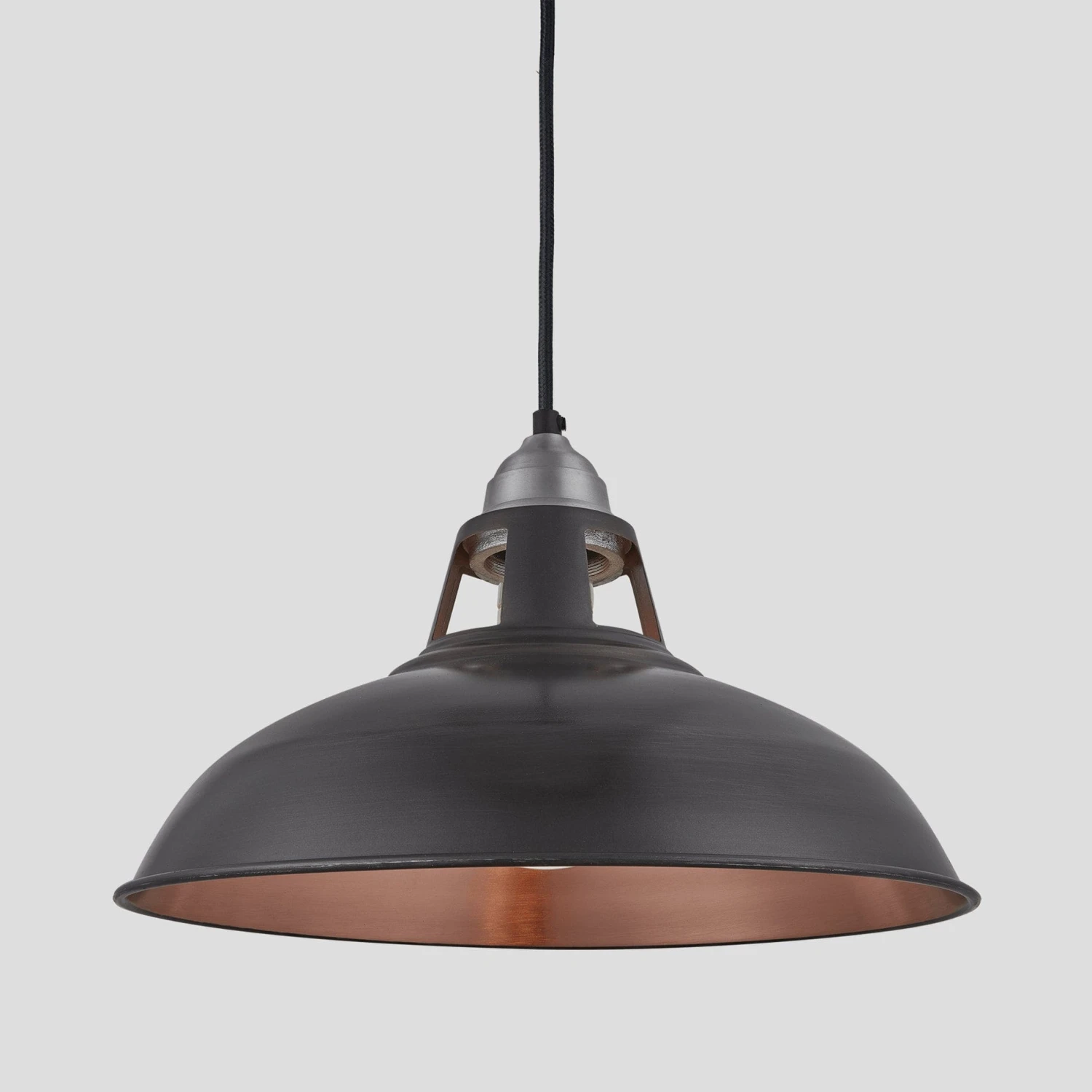 The Old Factory Slotted 15-inch is also available in Pewter and Copper. This light is available as a heat lamp. Put the spotlight on your space with the help of our Old Factory lights, a versatile lighting solution that works with a variety of different décors. This light is available in a smaller Old Factory 12-inch available in Brass, Pewter & Brass, Pewter, Light Pewter, Copper and Copper & Pewter. This light comes with 1m Black Round Fabric Flex.