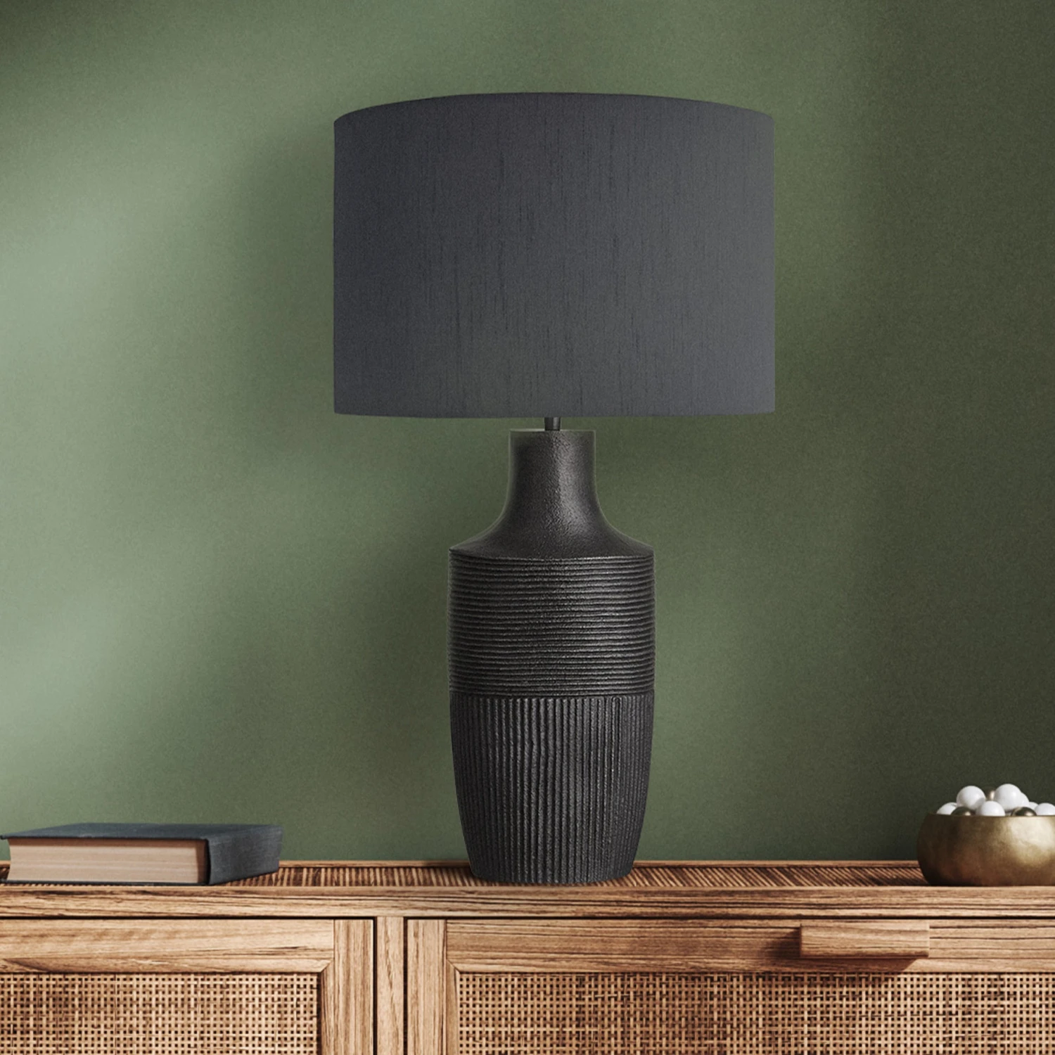 Our table lamps are ideal for creating a soft, ambient glow, adding warmth and dimension to your side tables, desks and bedside nightstands. You can pair the Pewter Ornate Vase Table Lamp base with your choice of lampshade from the Industville selection, finding the perfect combination to suit your style.