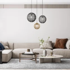 Handcrafted Wire Cage Pendant Light – 16 Inch – Globe – Brass