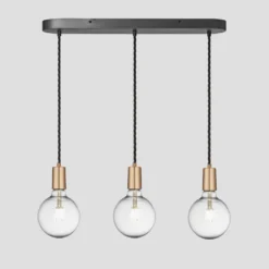 Sleek Edison Cord Set ES E27 Bulb Holder – Brass Ring & Fabric Flex – 2m – Without Ceiling Rose