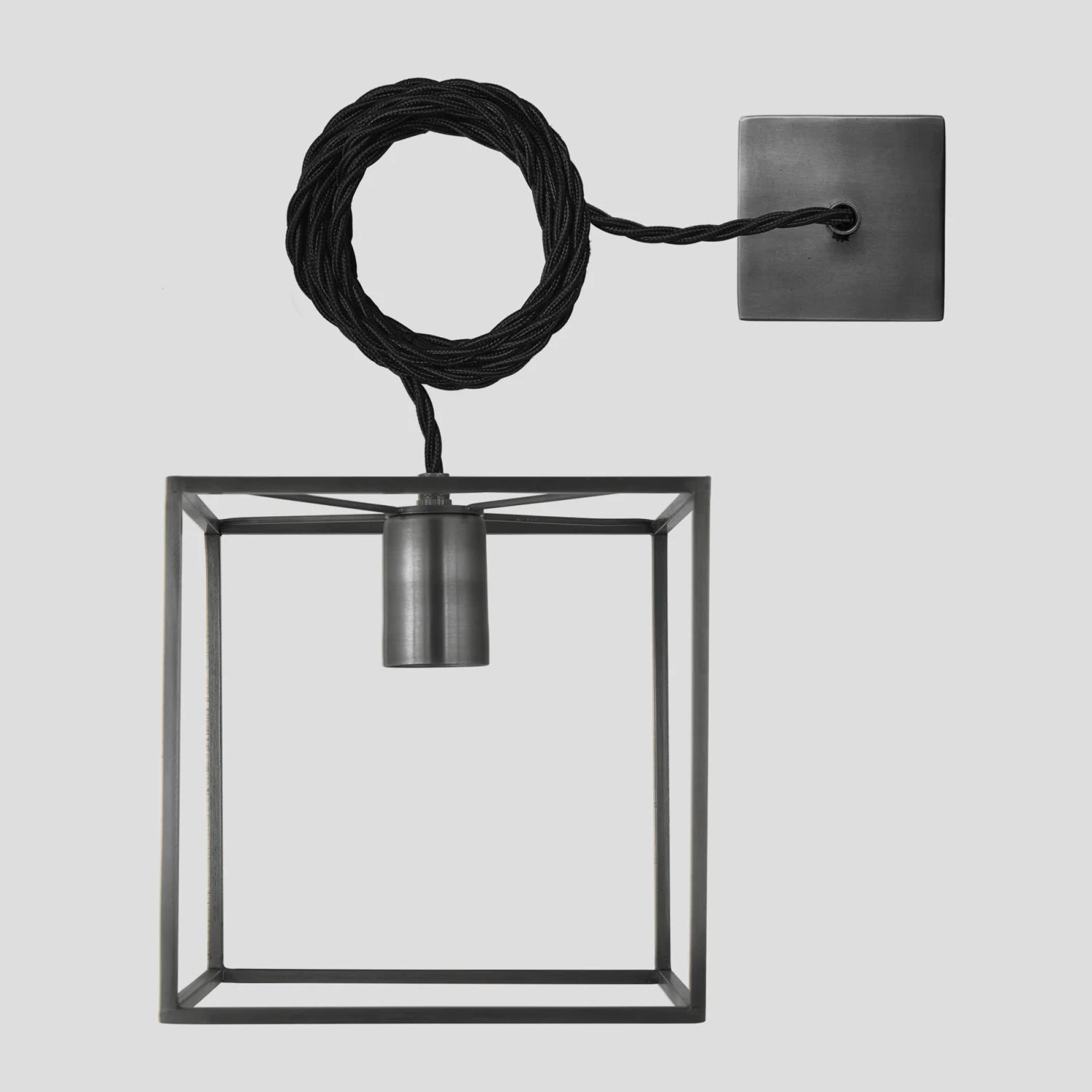 Sleek Cube Pendant Light – 8 Inch – Pewter