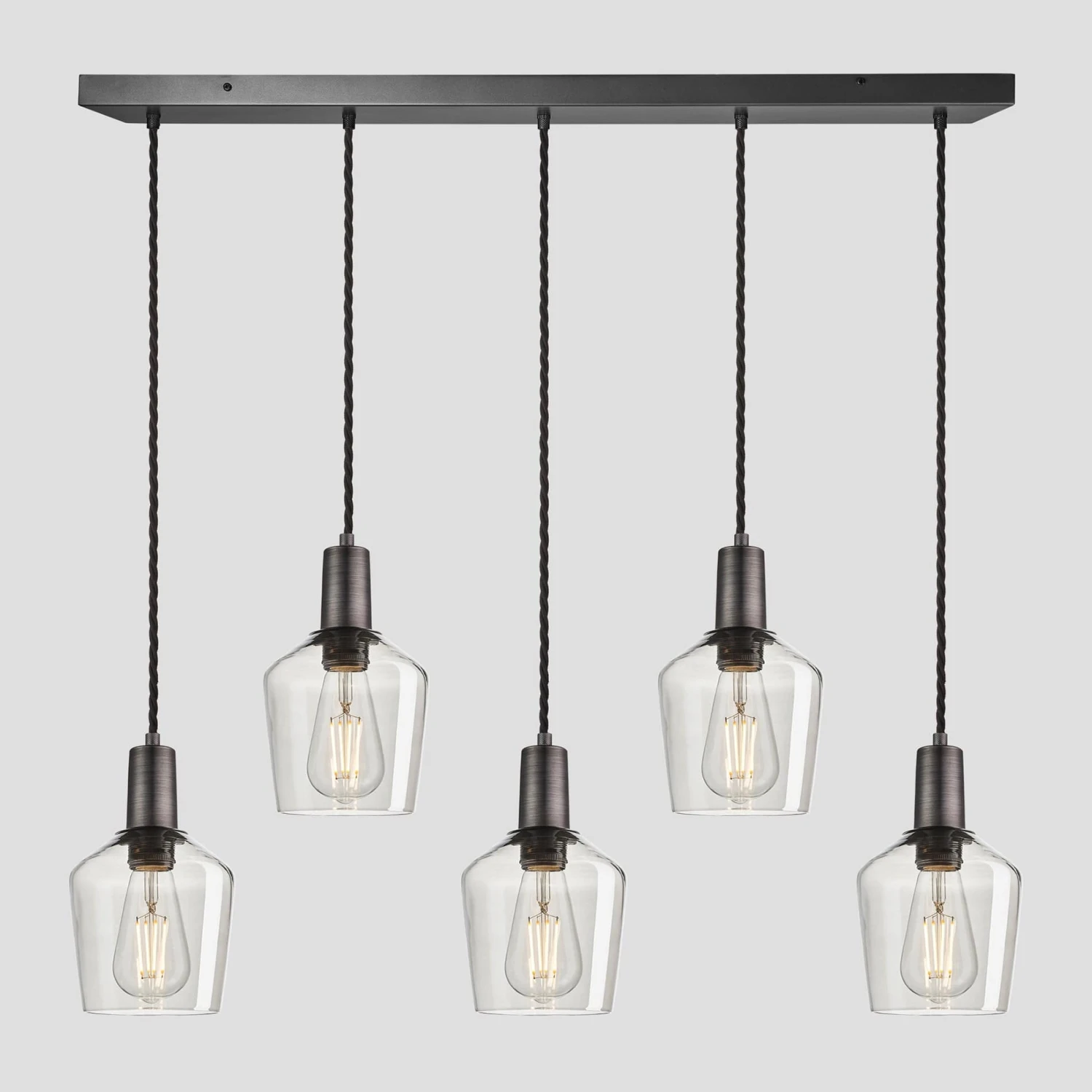Sleek Tinted Glass Schoolhouse 5 Wire Cluster Lights – 5.5 Inch – Smoke Grey