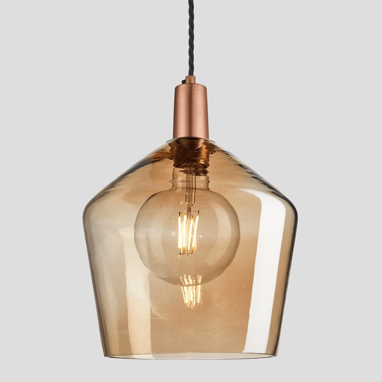 The Schoolhouse Pendant is a sophisticated lighting fixture that works beautifully for functional and aesthetic purposes. The Amber-tinted glass not only radiates a warm glow but also offers elegance to the interior design. The sleek light fixture elongates the pendant for a more subtle but characteristically defined centrepiece.