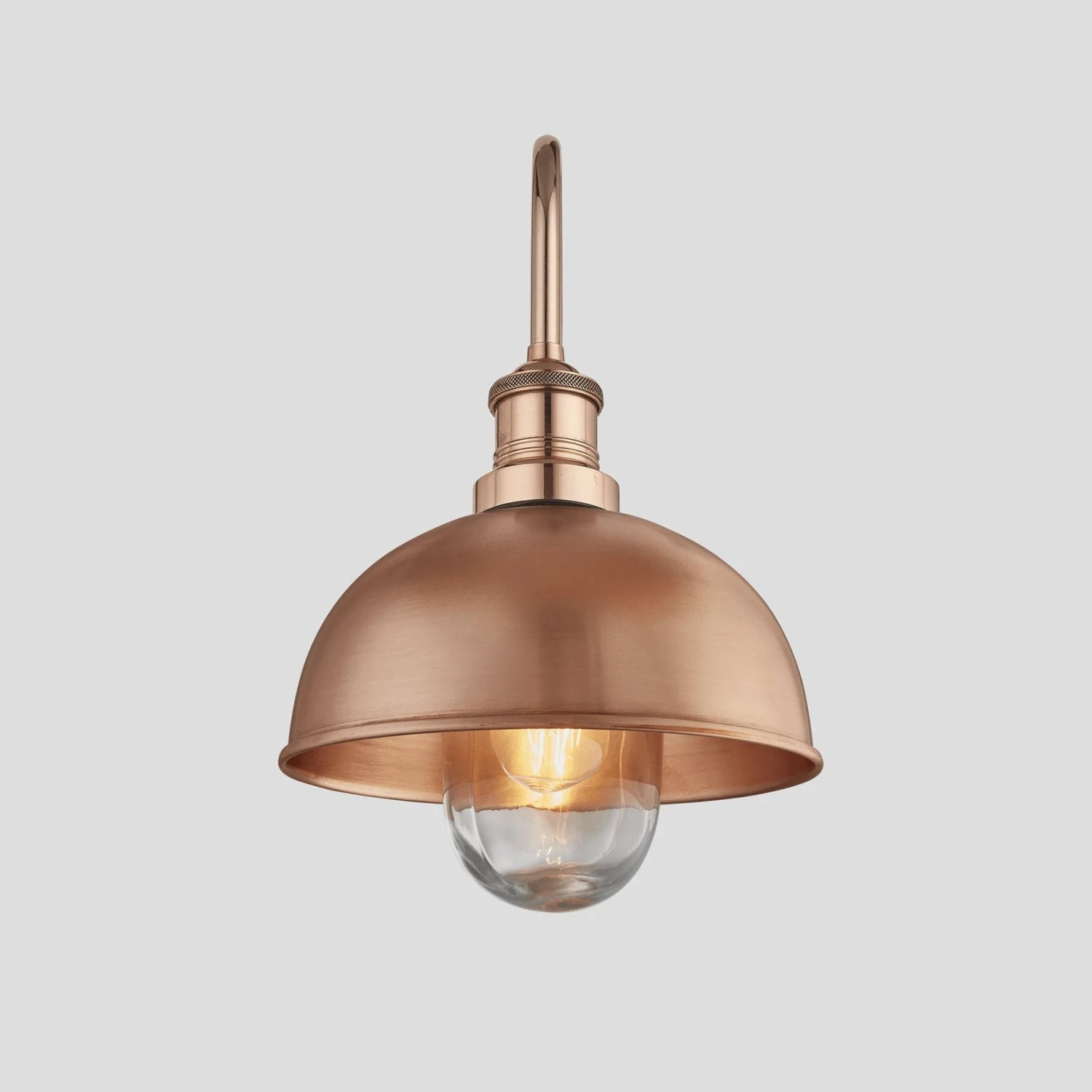 Swan Neck Outdoor & Bathroom Dome Wall Light – 8 Inch – Copper