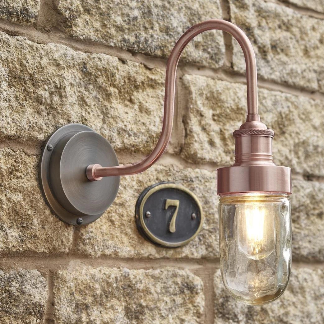 The Swan Neck Outdoor Wall Light in Copper is now available, providing an elegant yet efficient lighting solution for your home or business. The iconic curve of the wall fixture works well with both modern, contemporary, retro themes and classic, traditional, vintage interiors. These unique, industrial Wall Lights work particularly well when placed above original statement art, focal accessories and statement furniture to highlight the desired style.